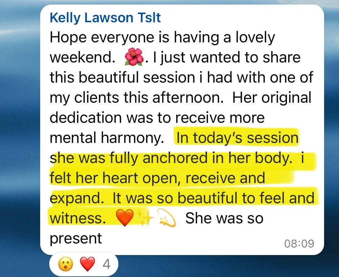 Overcoming Blocks to Connection: Address any resistance or discomfort that may arise, guiding clients to breathe and receive into areas of tension. This supportive approach fosters trust, encouraging clients to remain present with whatever sensations emerge.